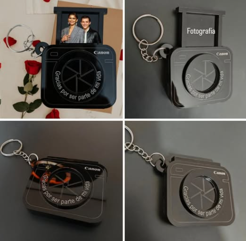 Portarretrato con forma de cámara, ideal para decorar y guardar momentos inolvidables.