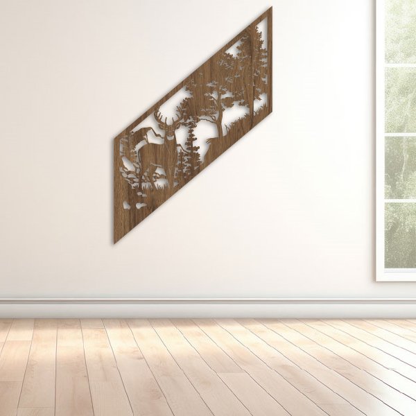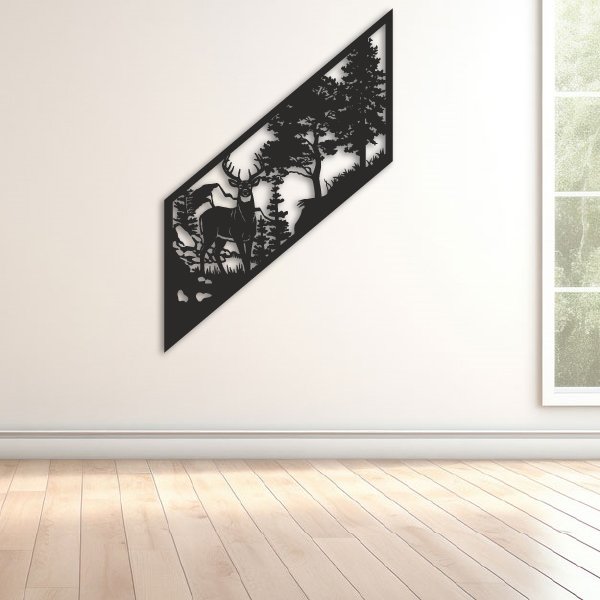 Composición alargada que destaca la figura del venado, ideal para rincones estrechos con estilo rústico.
